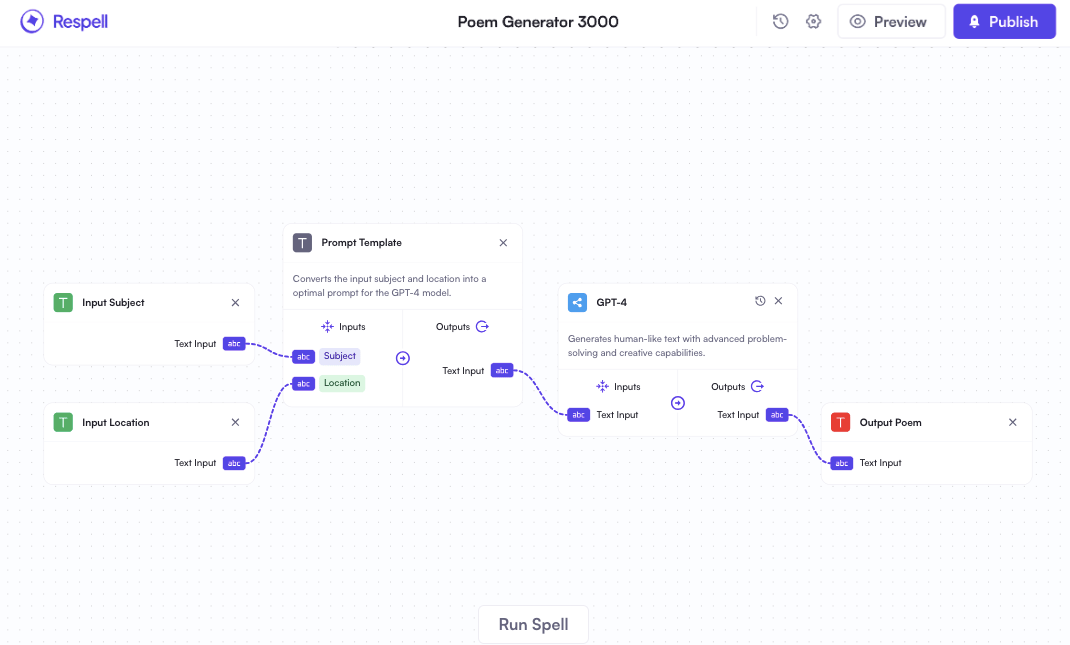 4. Respell: Respell is an automation platform that allows users to create workflows called "spells" powered by AI. Users can build custom spells from scratch using Respell's visual workflow builder, which utilizes a drag-and-drop interface to easily visualize how an automation will play out. All spells created on the platform leverage AI capabilities so workflows can be automated without the need for coding.